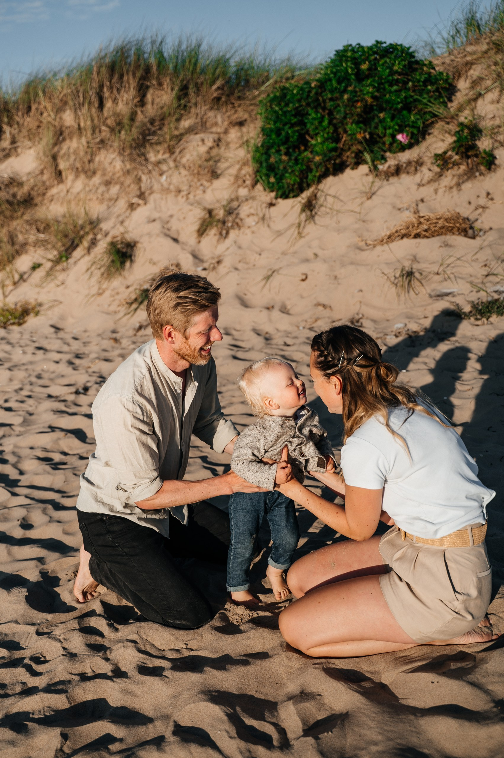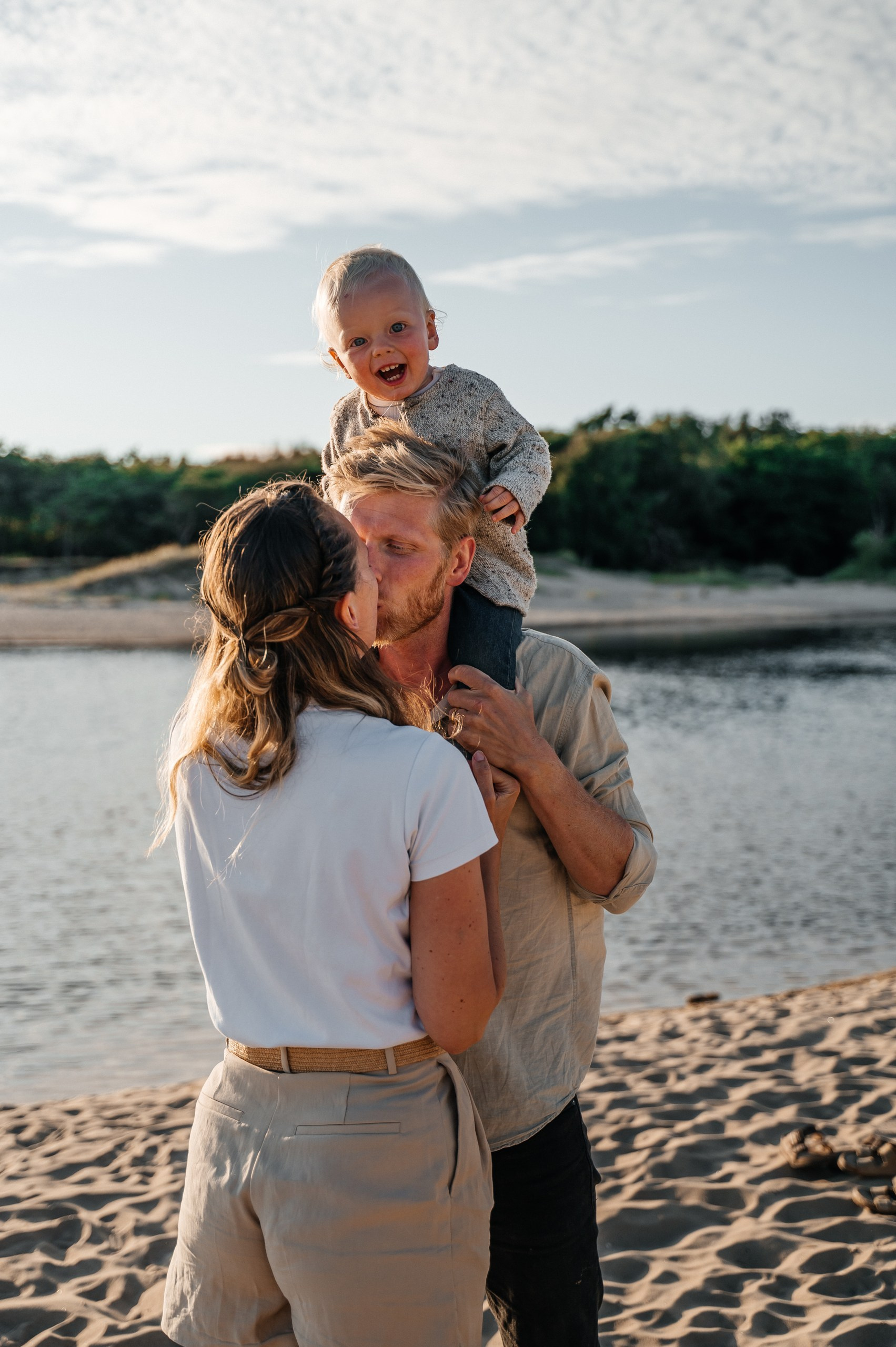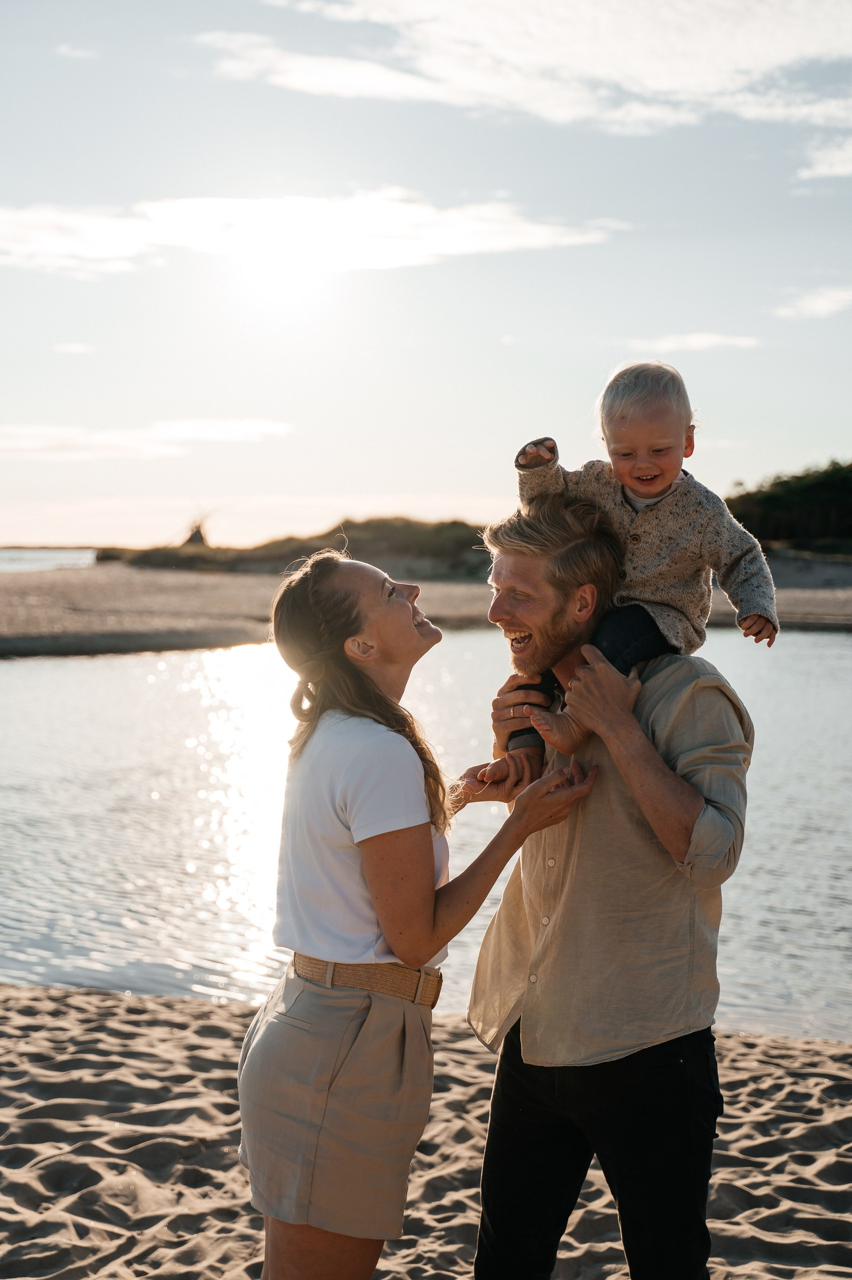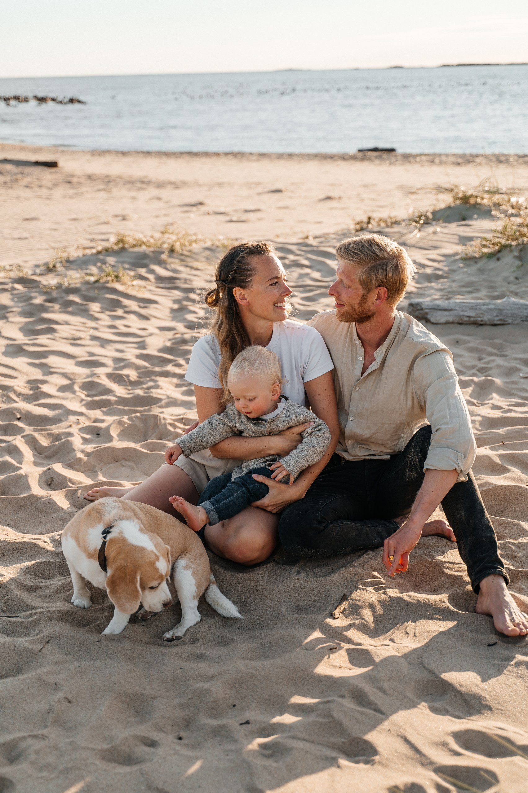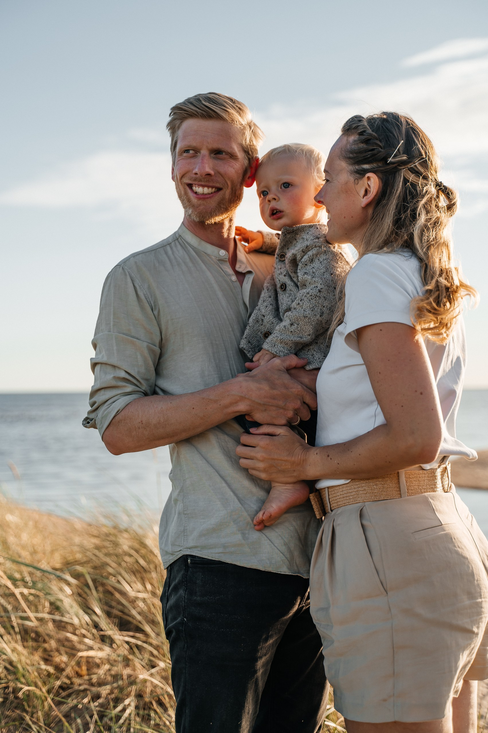 Familjefotografering på Skrea strand i Falkenberg — Grace, Tommy and Einar