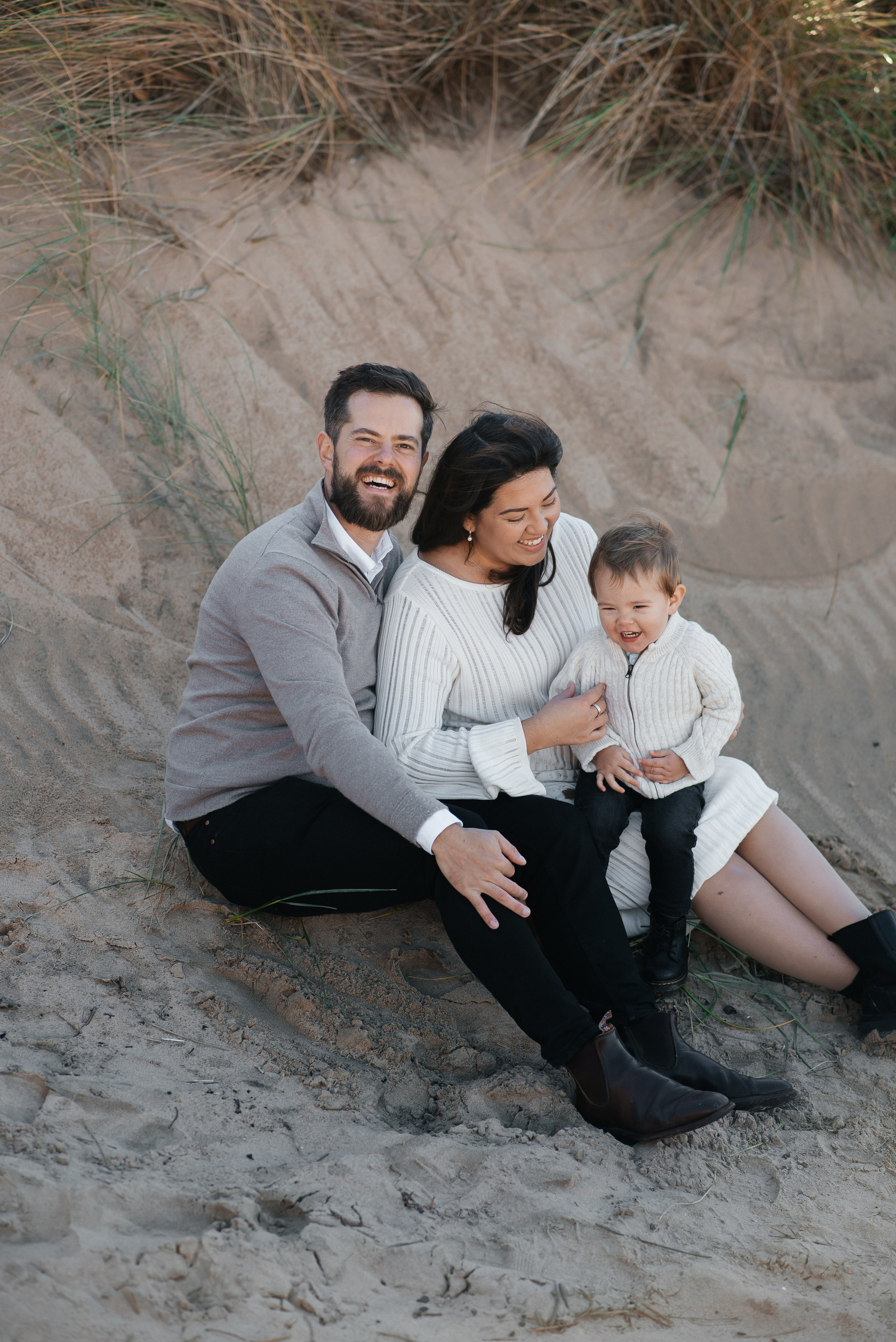 Familjefotografering på Skrea strand i Falkenberg — Grace, Tommy and Einar